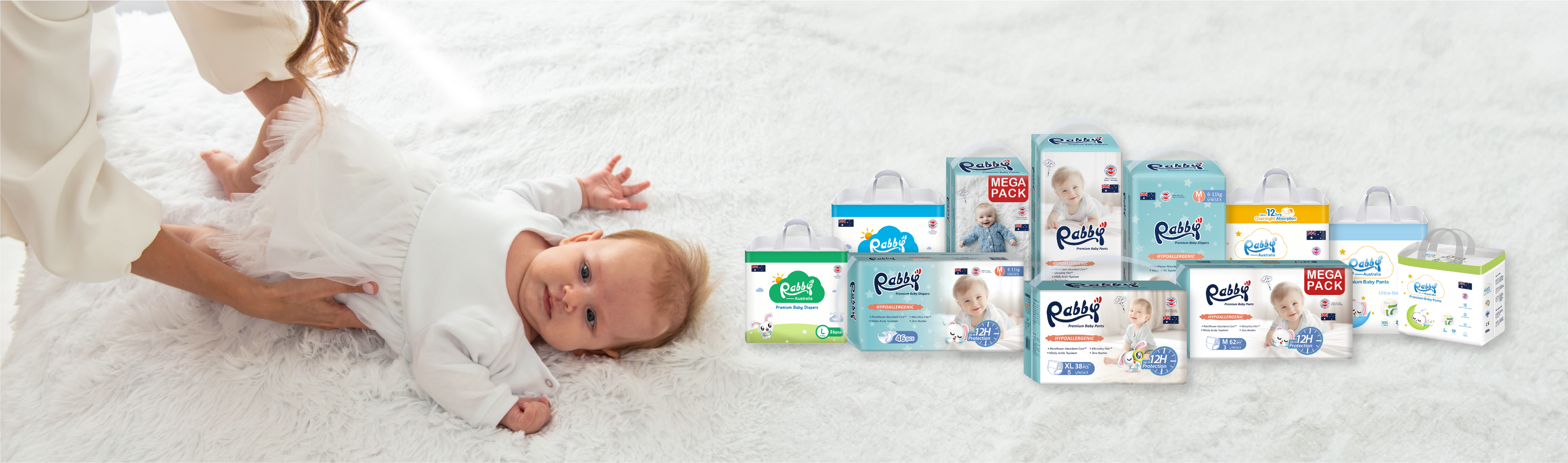 Choose Rabby Premium Baby Pants – 12 Series for premium comfort, excellent absorbency, and leak-free protection, giving your baby the best care they deserve.
