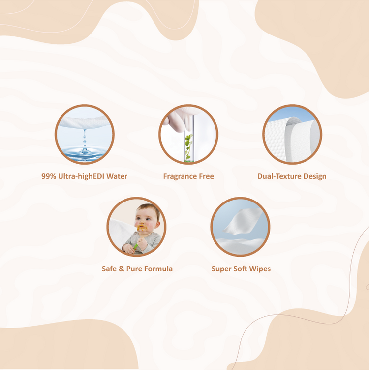 Our baby wipes are crafted from premium, biodegradable fibers and are enriched with a gentle, 99% natural formula that is free from harsh chemicals, fragrances, and alcohol.